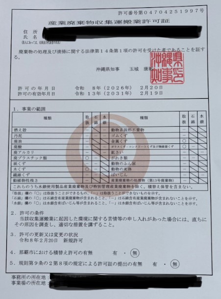 産業廃棄物収集運搬業許可証も取得していますので、安心安全にご依頼内容に対応いたします。